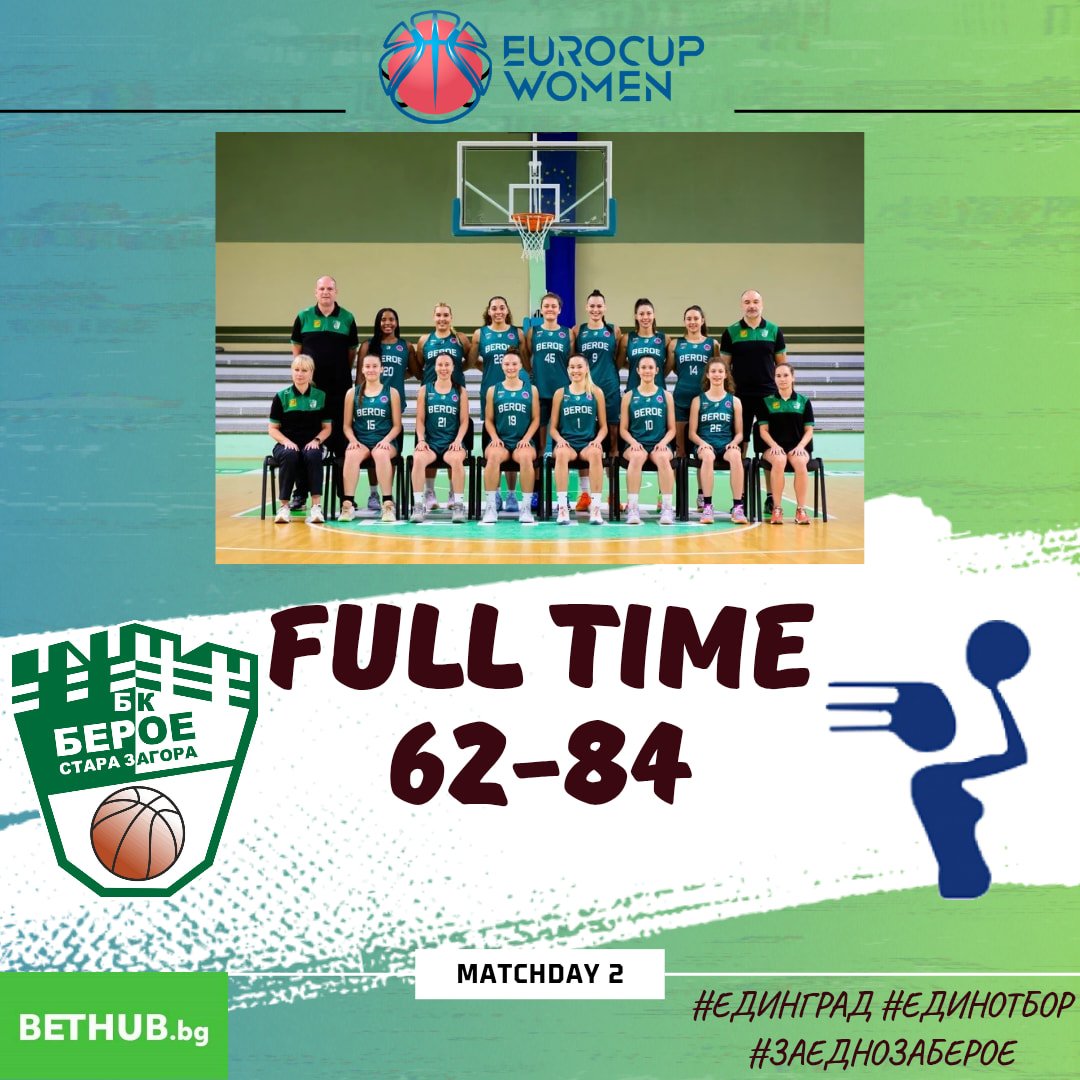 Баскетболистките на Берое Стара Загора претърпя втора загуба в група L на Еврокъп, след 62:84 срещу швейцарския Фрибур.