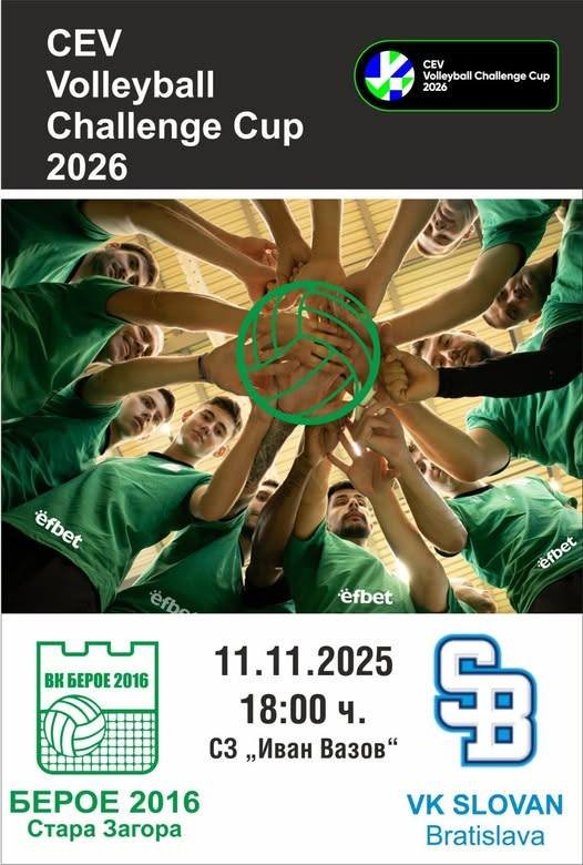 Ела и подкрепи волейболните беройци в европейското им изпитание за Купата на Претендентите, в спортна зала „Иван Вазов“!