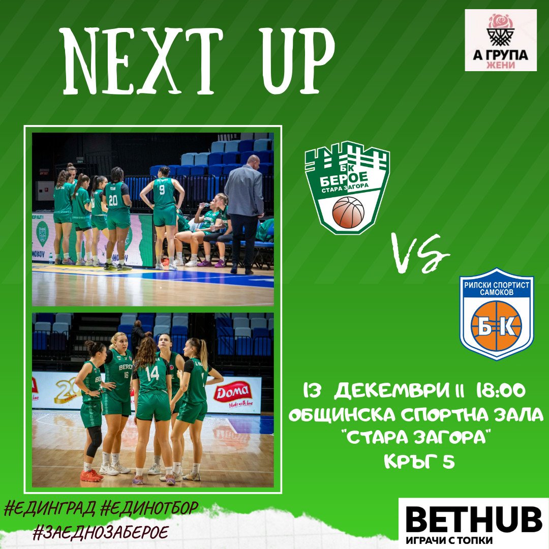 След сладкия успех над Монтана у дома, женският тим на Берое по баскетбол се завръща към шампионатните си ангажименти и в събота ще приеме Рилски спортист.