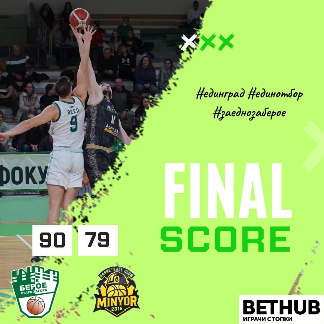 Берое записа четвърта поредна домакинска победа в Sesame НБЛ след 90:79 срещу Миньор.