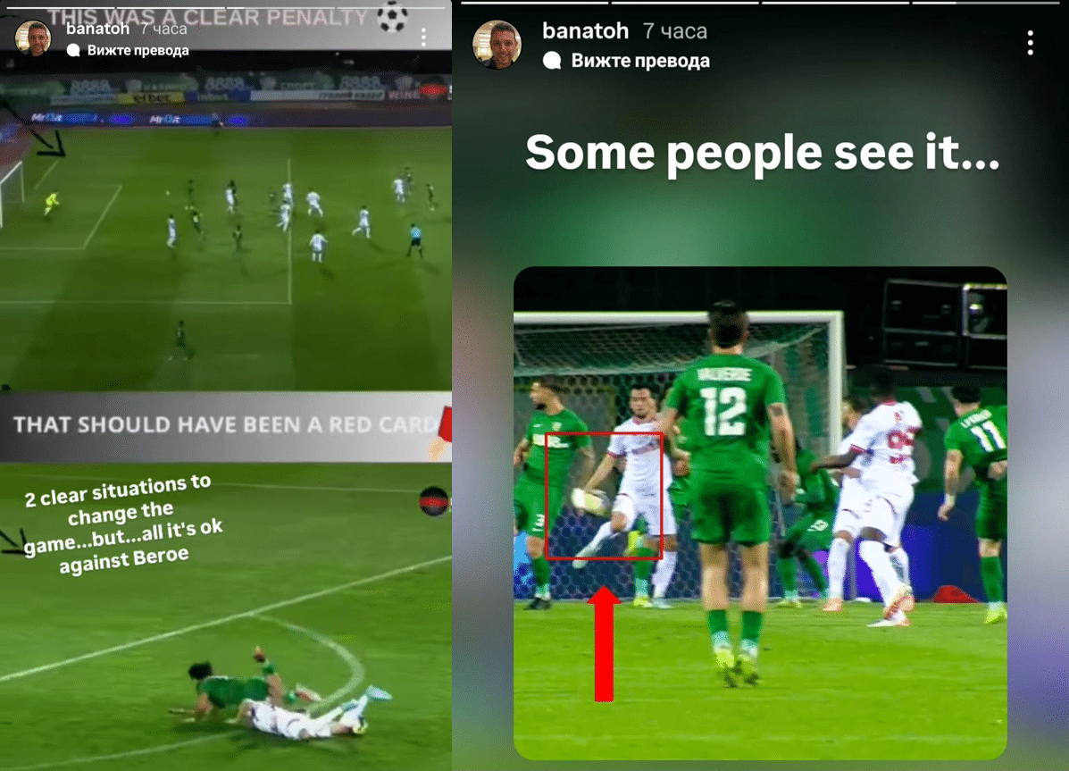 Последният защитник на ЦСКА (б.р. – в защита) прави нарушение пред наказателното поле и няма червен картон… не е възможно и не е добре за футбола в България… ВАР във ваканция ли беше? Уважавайте малките отбори, моля… САМО БЕРОЕ.