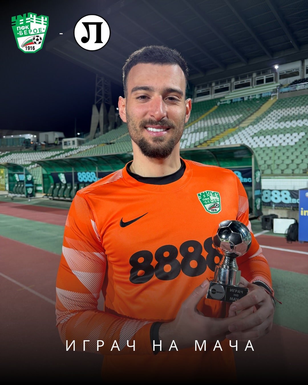 Вратарят на Берое Артур Мота беше избран за Играч на мача при равенството 0:0 срещу Локомотив Пловдив у дома.